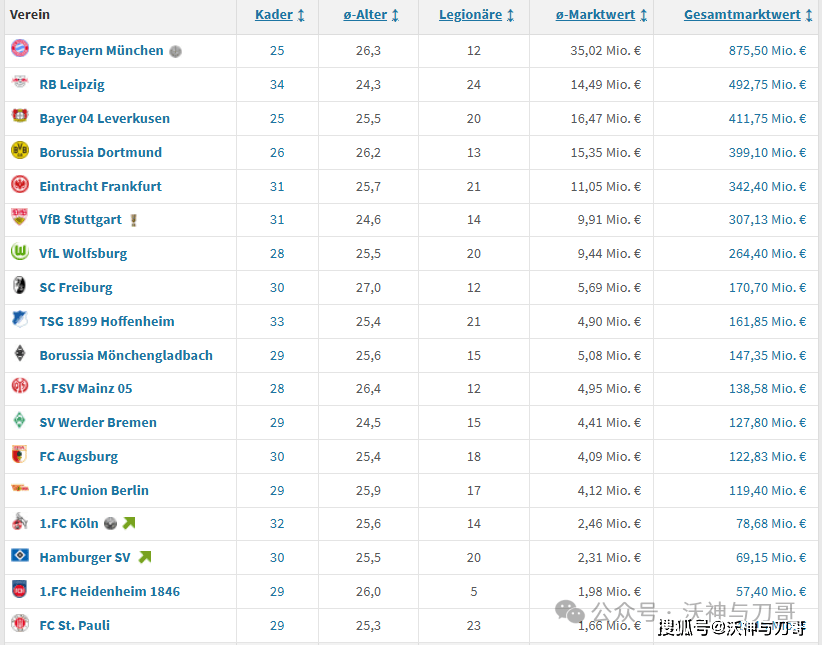 2025-2026赛季德甲身价排名:拜仁身价遥遥领先